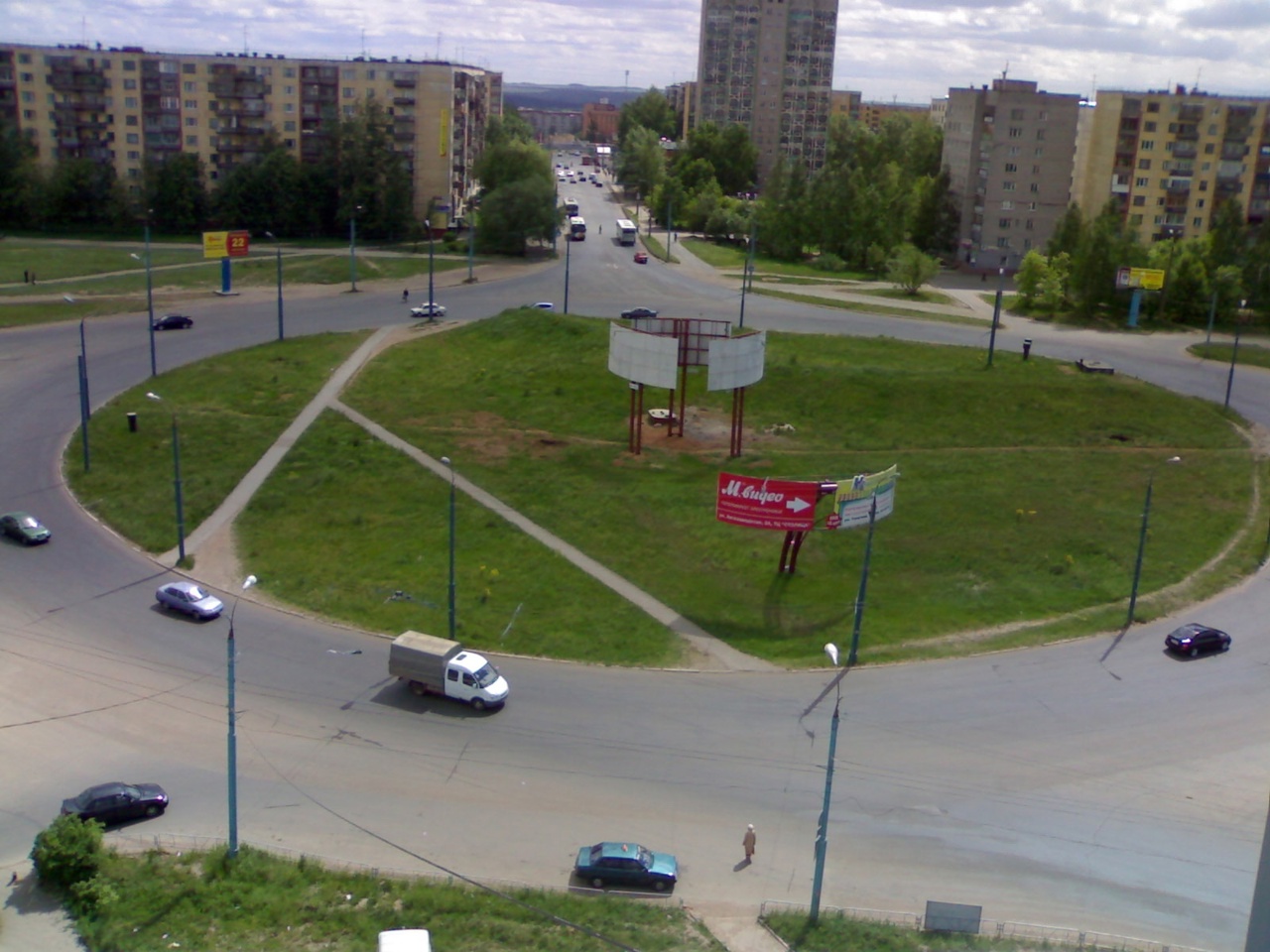 Справа дом улица Петрова 1. Слева Петрова 6. Прямо Дом моделей Ворошилова 109А. Июнь 2005 года. Ижевск.