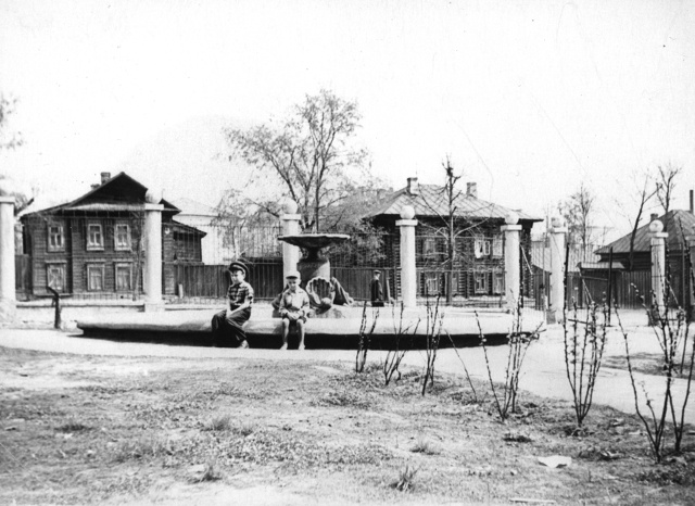 Двор дома Красноармейская 171. 1956 год. Фото из семейного архива Анны Степашкиной. Фотография от дома на улицу.
