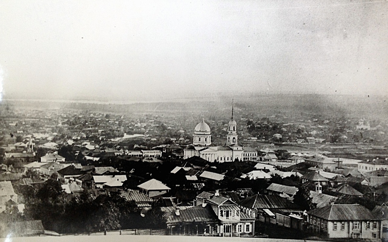 Вид на Нагорную часть Ижевска. Из знакомых взгляду объектов мы видим лишь храм Архангела Михаила на главной возвышенности - Красной горке.