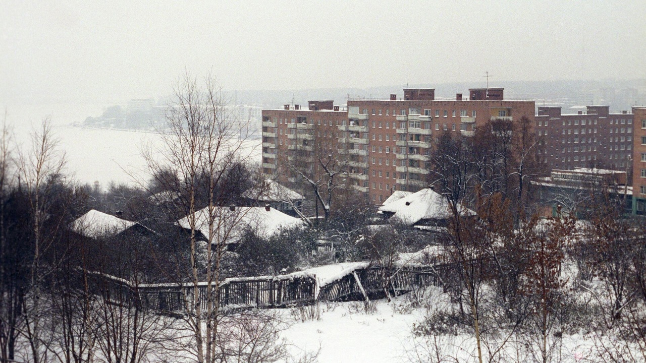 Частный сектор у эспланады. Горького 152. Ижевск. 1 декабря 1992 года. Фото Вячеслава Рунова.